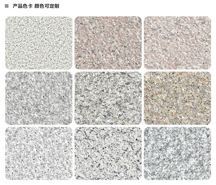 彩云石是一款水性環(huán)保無(wú)毒產(chǎn)品,搭配高端硅丙乳液,完美還原天然石材的紋理效果與表面質(zhì)感,以環(huán)保輕質(zhì)的涂層盡顯天然石材的高級(jí)美,同時(shí)很好解決外墻常見(jiàn)沾污,發(fā)花等頑疾。